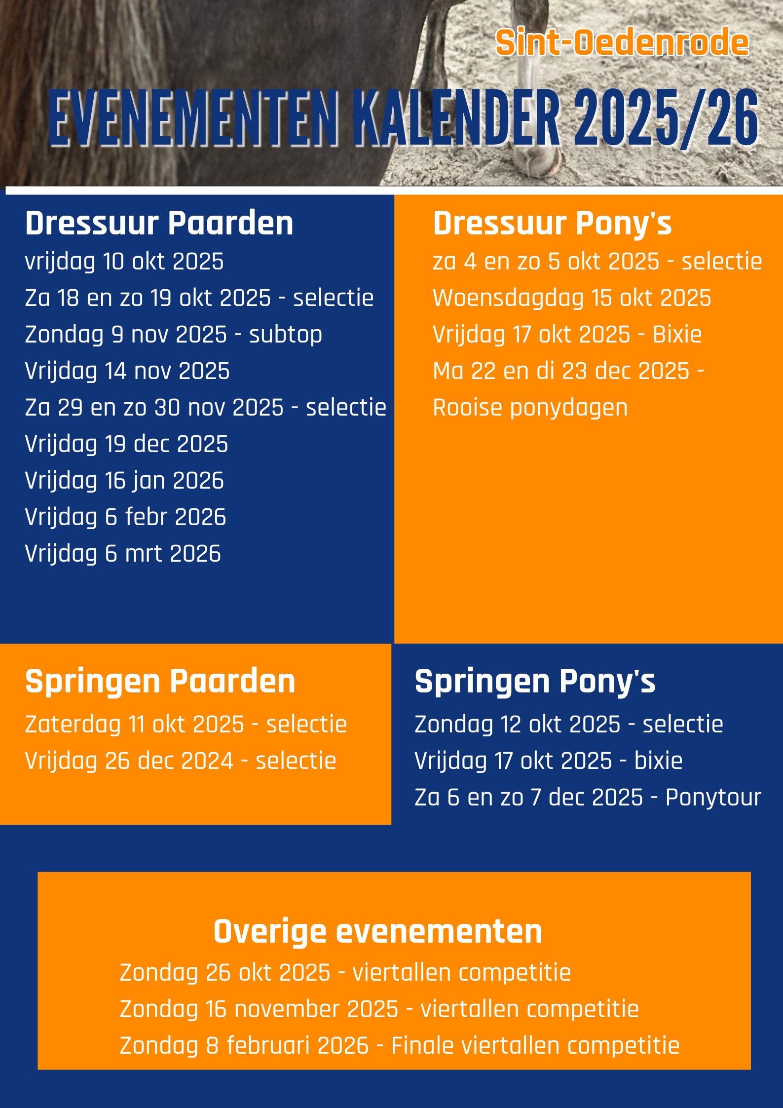 Onderaan deze pagina vindt u de poster met de aankomende wedstrijden, georganiseerd door de Rooise Ruiters en Ponyruiters.